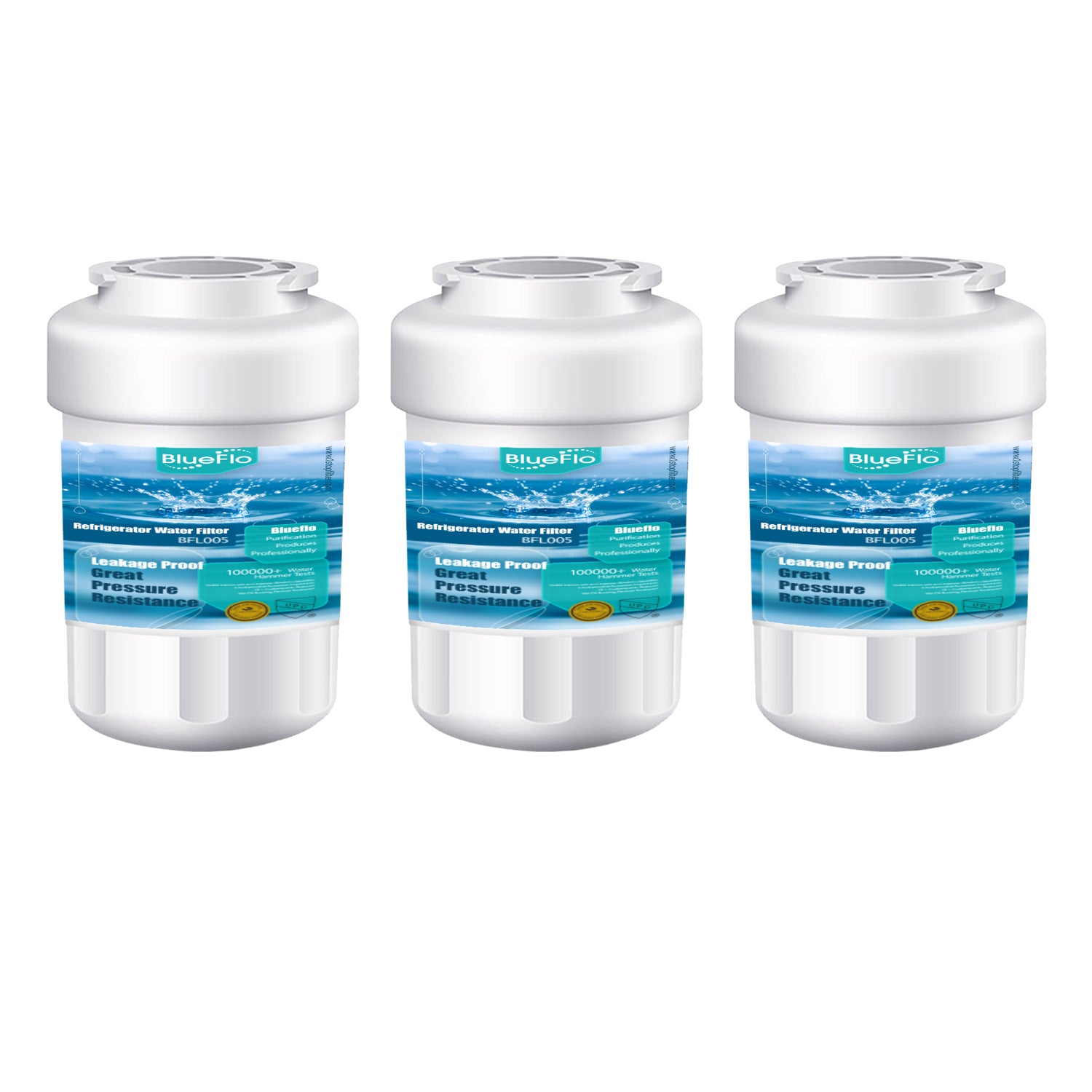 Blueflo Fridge Water Filter Replacement for GE® MWF®, SmartWater® MWFP, MWFINT, MWFA, GWF, HDX FMG-1, Kenmore® 9991, GSE25GSHECSS, WFC1201 Water Filter, 3 Pack