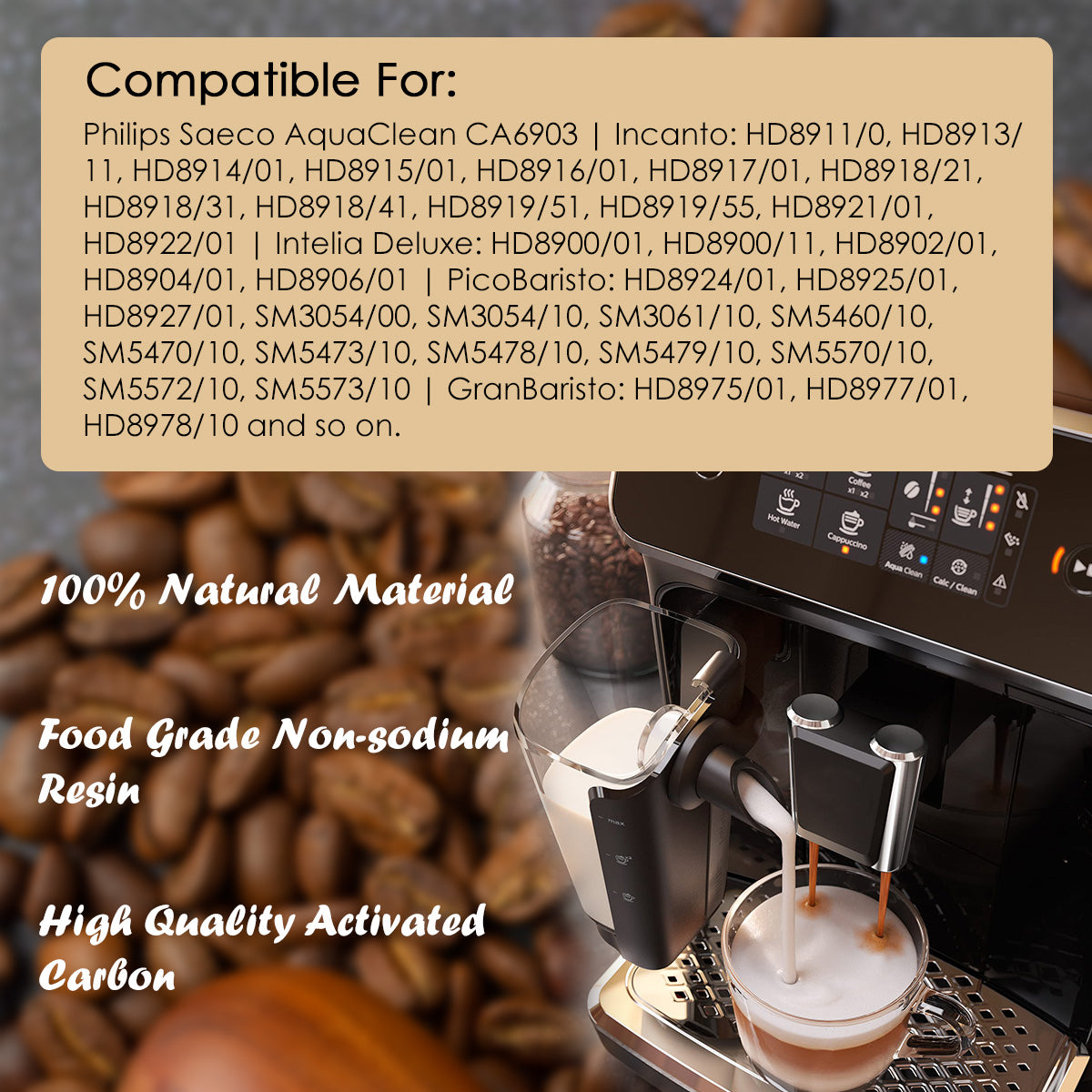 ★COMPATIBLE MODELS: Philips Saeco AquaClean CA6903 | Incanto: HD8911/0, HD8913/11, HD8914/01, HD8915/01, HD8916/01, HD8917/01, HD8918/21, HD8918/31, HD8918/41, HD8919/51, HD8919/55, HD8921/01, HD8922/01 | Intelia Deluxe: HD8900/01, HD8900/11, HD8902/01, HD8904/01, HD8906/01 | PicoBaristo: HD8924/01, HD8925/01, HD8927/01, SM3054/00, SM3054/10, SM3061/10, SM5460/10, SM5470/10, SM5473/10, SM5478/10, SM5479/10, SM5570/10, SM5572/10, SM5573/10 | GranBaristo: HD8975/01, HD8977/01,HD8978/10.