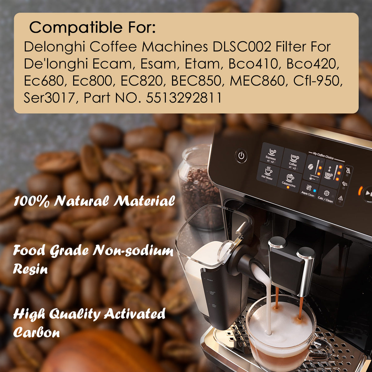 【Water Filter Replacement For Delonghi】Water Filter Replacement Compatible With Delonghi Coffee Machines DLSC002 Filter For De'longhi Ecam, Esam, Etam, Bco410, Bco420, Ec680, Ec800, EC820, BEC850, MEC860, Cfl-950, Ser3017, Part NO. 5513292811